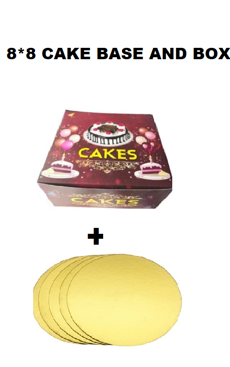 Product Description: 8*8 Round Golden Paper Cake Base and Random Design Box Combo Set