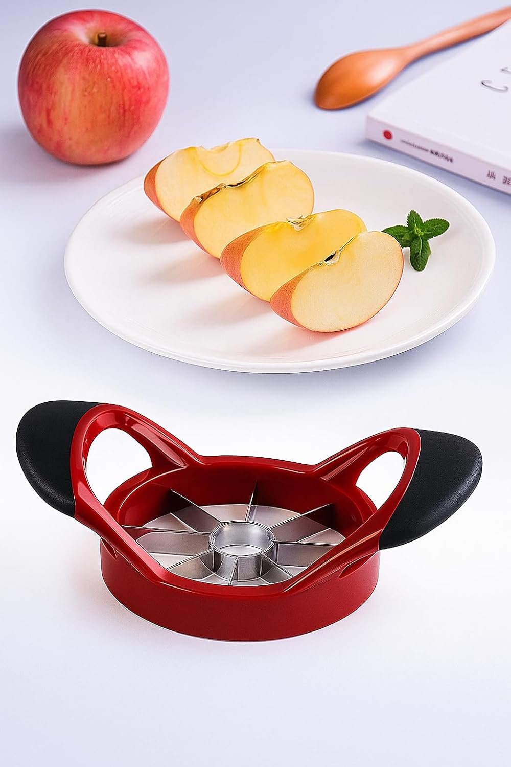 - 🍎 Quick & Effortless Slicing: Cores and evenly cuts apples or similar fruits into 8 perfect wedges in one easy push.