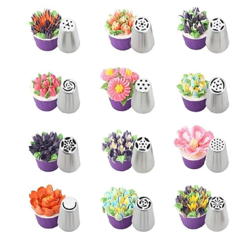 Cake Decorating Nozzle Set of 12 pcs, Stainless Steel Russian Piping Nozzle for Decorations
