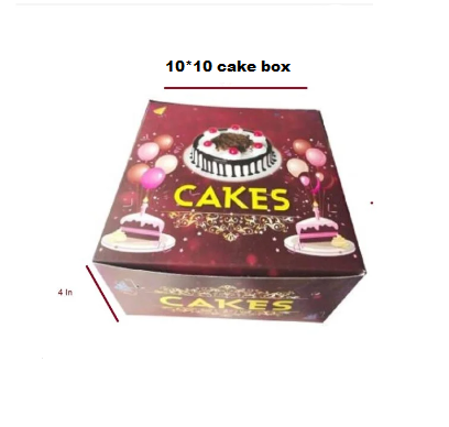 The dimensions of this box are 10*10*4 inches, providing ample space to accommodate a 1kg cake with ease. The sturdy construction of the box ensures that your cake remains secure and protected during transportation, preventing any damage or mishaps.