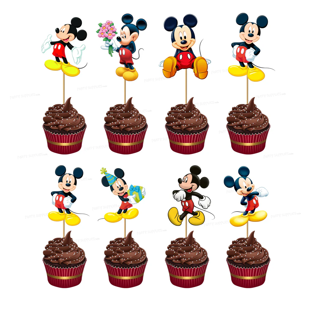 Theme: Mickey Mouse Cartoon cake topper , Material: Paper , No. Of Toppers in a Set:6, Purpose: Used For Cake Decoration