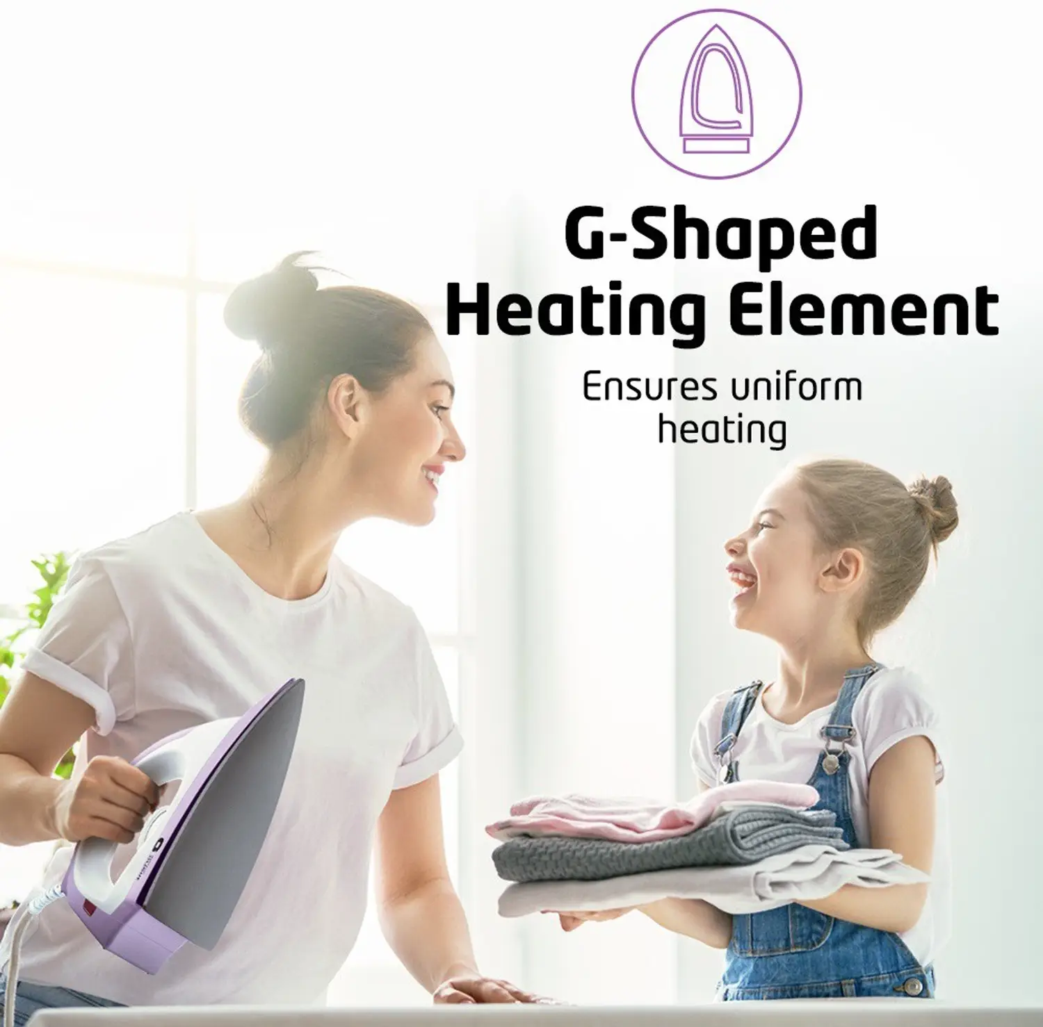 Built with a G-shaped heating element, this dry iron is easy to operate.