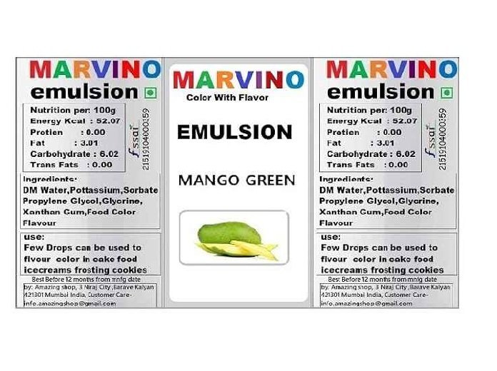 • Marvino Emulsion Perfect for syrups, sherbats, cakes, icing, cookies, frians, ice-creams, confectioneries, sweets, jams, jellies, etc.
