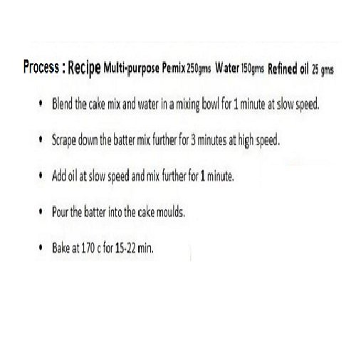 - Ingredients : wheatflour, hydrogenated vegetable oil, milksolids, baking powder, emulsifiers and stabilizer ins(471,475,415)