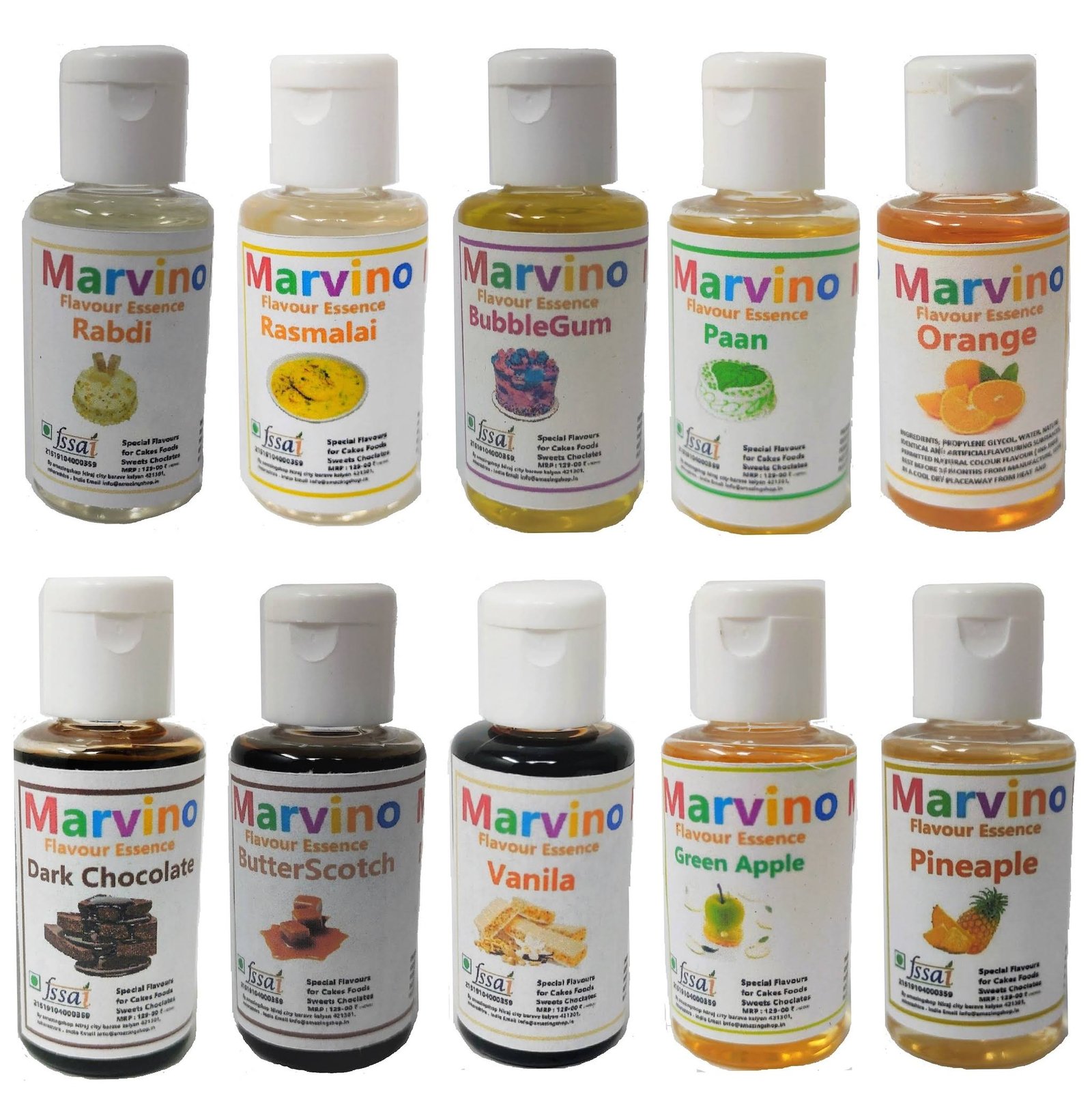 Marvino Top Ten Flavours Extracts Essence For Cakes Sweets Pastries And Chocolates (Pack Of 10 )