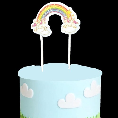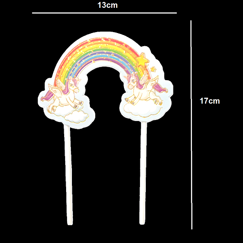 1 pcs rainbow cake topper with rainbow, unicorn is suitable for most cakes. This rainbow cake topper is printed with glitter surface, will shine at your rainbow theme birthday party. It is perfect for you to decorate your rainbow themed birthday cake or any other kind of cake.