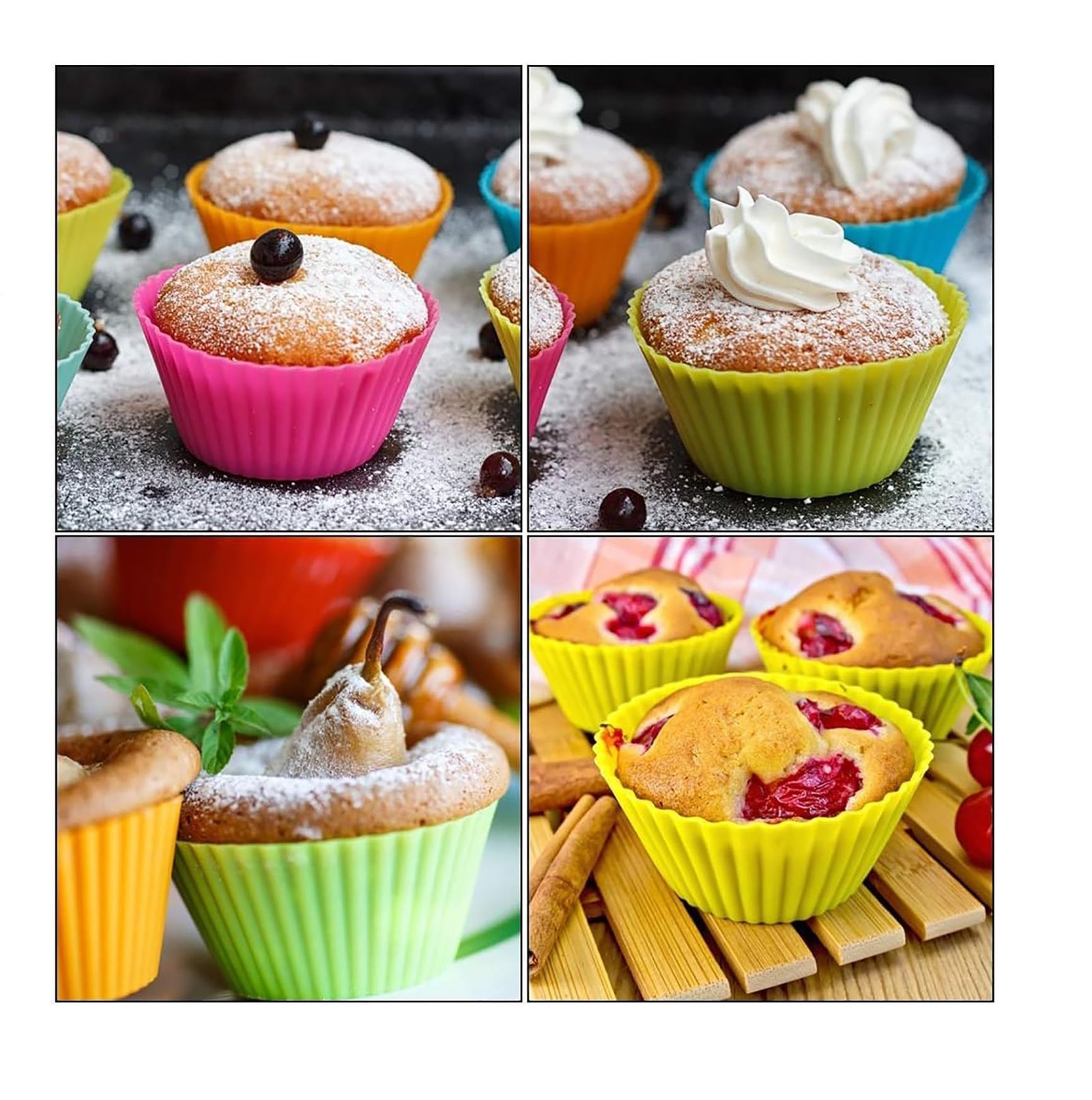 Each set includes 24 reusable baking cups in six vibrant colors: red, yellow, orange, blue, green, and pink, with four of each color. Designed to fit standard sizes, these cups are compatible with most muffin pans. They can withstand a temperature range from -40°C (-40°F) to 230°C (446°F), making them safe for use in the microwave, oven, and freezer without breaking or melting. Their durability ensures long-term usability.